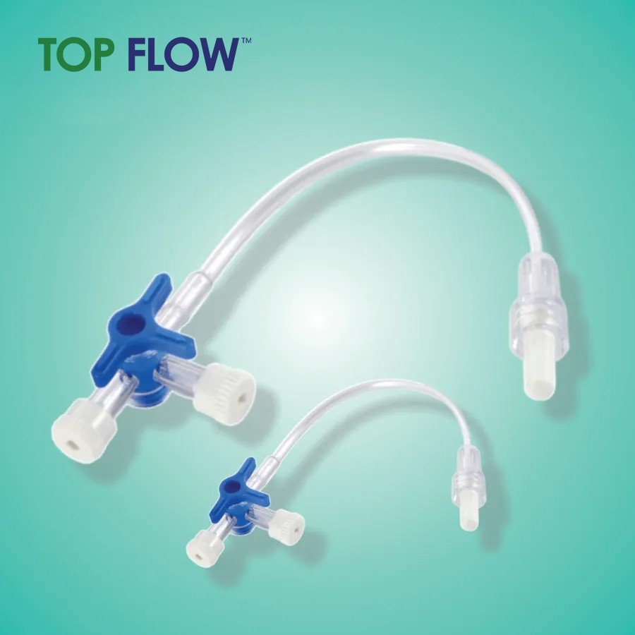 An Extension Line with 3-Way Stopcock is a versatile and essential device used in intravenous (IV) therapy and other clinical procedures to enhance fluid management and delivery. It consists of a flexible extension tube connected to a three-way stopcock, which allows healthcare providers to control and direct fluid flow across multiple channels. This configuration enables precise infusion of medications, fluids, or contrast agents, offering flexibility in various treatment and diagnostic applications.